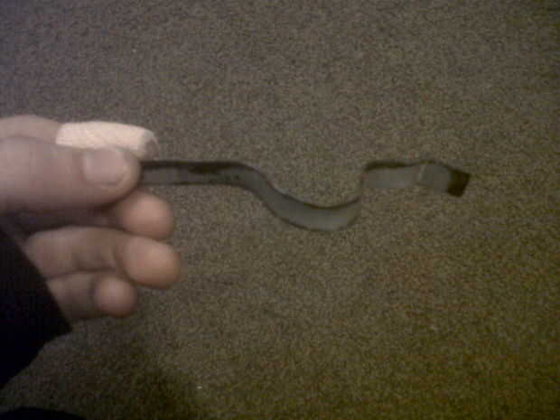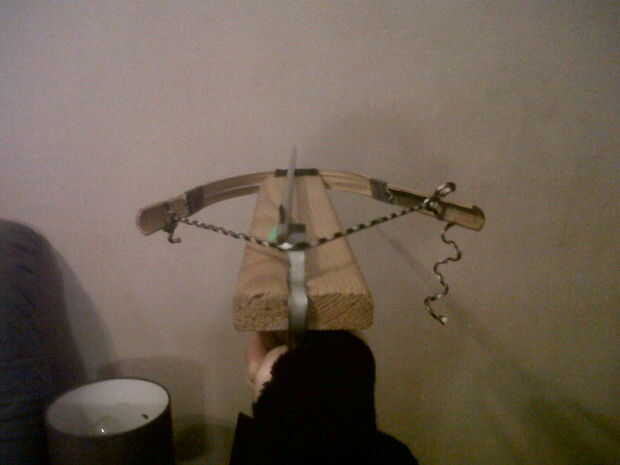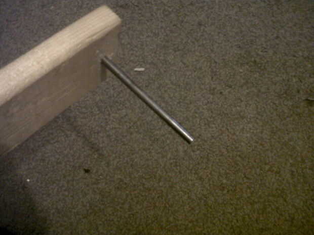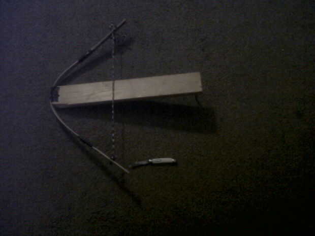 Lo que necesita: 17 pulgadas de madera dura, madera flexible no importa la longitud, 19 pulgadas de la picadura al principio utilicé alambre era bueno pero ahora utilizo paracord, un mango usé una barra de metal que encajan en el agujero en la madera, del metal fino flexible de 6 pulgadas, si usted lo desea, de cinta aislante del taladro si tienes uno pero si no puedes encontrar un tornillo grande y martillo en el duro madera y será el mango.