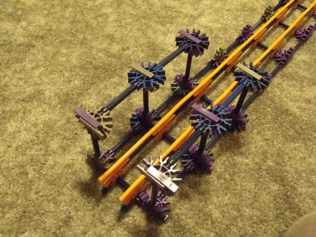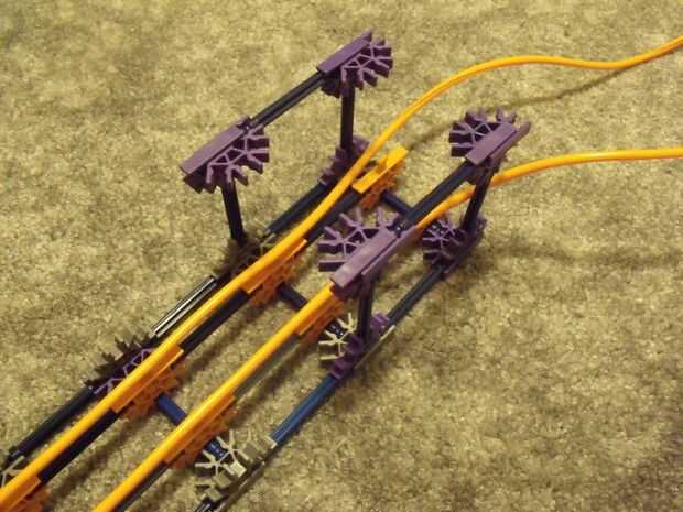 Coloque las piezas de "W" primero y luego la "U" piezas para el riel inferior.