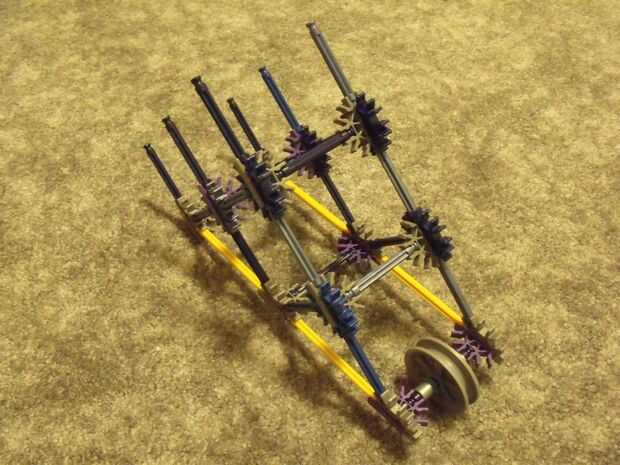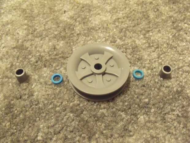 Cuando conecta la parte superior e inferior "extremidades" juntos, usted necesita agregar separadores y ruedas en los extremos de los triángulos en el siguiente orden: separador grande, pequeño espaciador, rueda sin neumático, pequeño espaciador, separador grande.