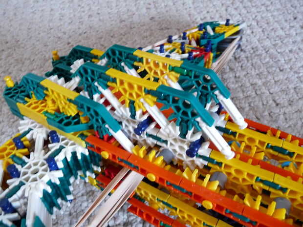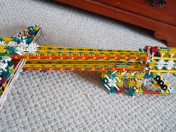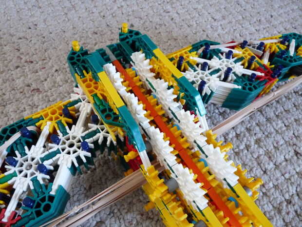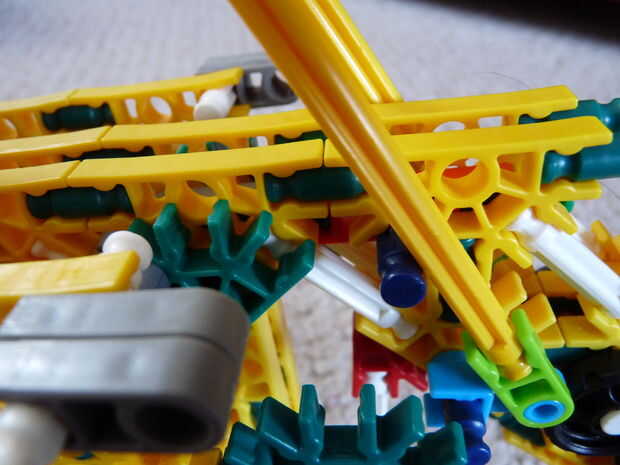 2: Inicio conectando un brazo de arco a una de las piezas del delantero. No importa que uno