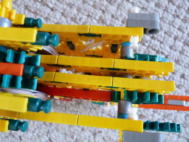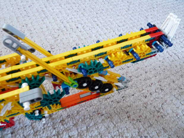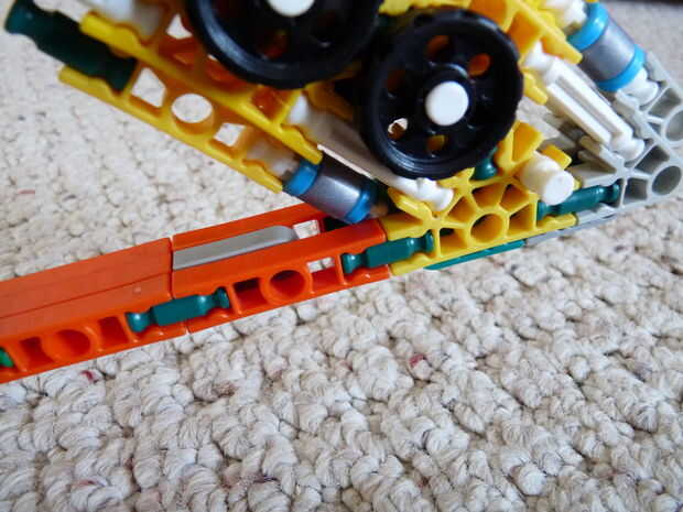 35: Gire el cañón para que pueda moverse esa pieza hecha en "esto y aquello" en el cañón. El conector gris oscuro debe hacer frente la parte posterior de la pistola, en la parte inferior.