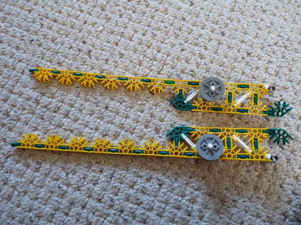 1: construir estos dos paneles. Hay un conector gris oscuro rompió en que la barra blanca entre el amarillo y la rueda. No importa que va en la dirección.