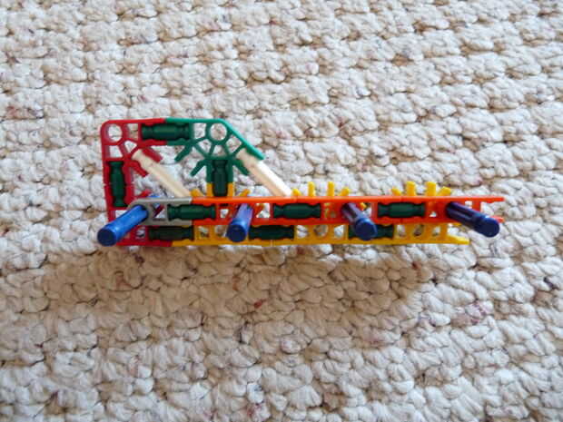10: Deslice el azul a través de los conectores rojos que forman parte de la diapositiva (no los conecta al conector verde) y complemento en las tres piezas como se muestra.
