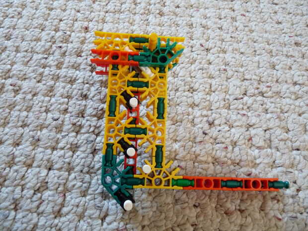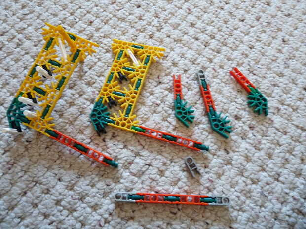 4: Coloque las dos piezas pequeñas en la varilla amarilla en ambos lados