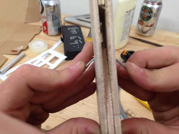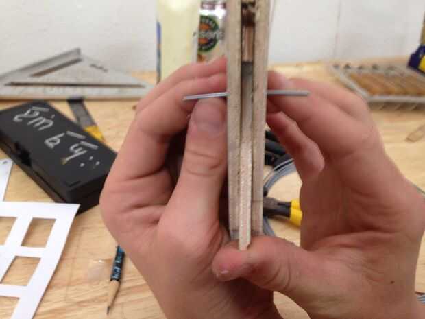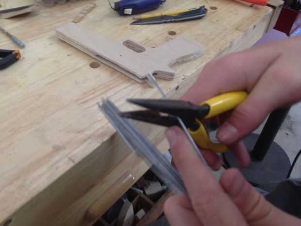 Pruebe el gatillo para ver que funcione correctamente. Luego, pinchar el gatillo y los paneles con 2" pedazo de alambre. Dóblelo para mantener en su lugar.