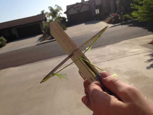 esto es técnicamente una ballesta, pero se utiliza como una pistola. Es una ballesta porque hay no hay ram, pero hay un disparador. Es potente con una banda de goma - rango máximo de 15 a 20 pies, alcance de 10 pies. Por rango efectivo me refiero a l