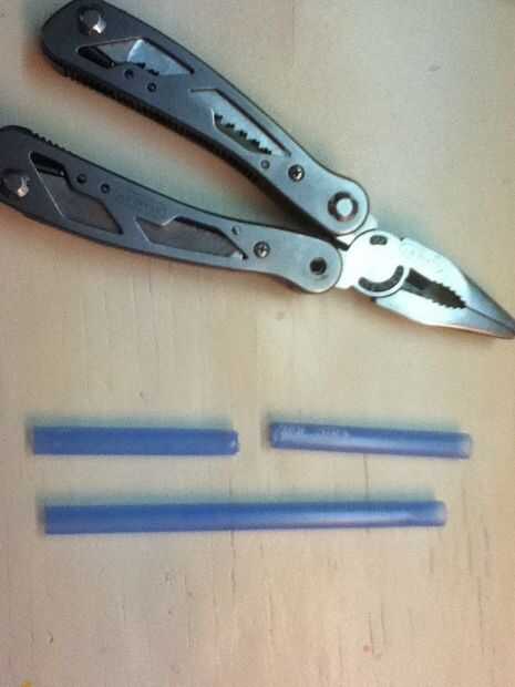 doblado Sierra utiliza plantilla hoja de sierra, un remache pop con arandelas y una tira de nylon u otro plástico duro.Paso 1: Cortar el mango. Una ranura de la cuchilla de la sierra (Nota: ranura no pasa por la parte posterior del mango).Paso 2: Gui