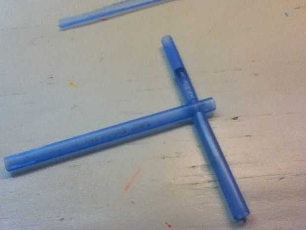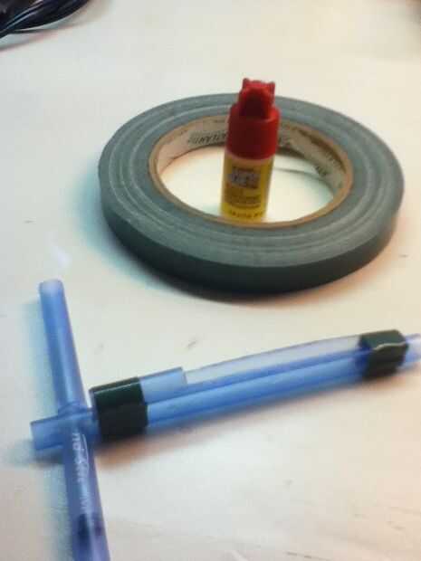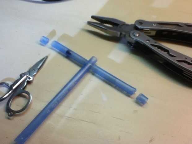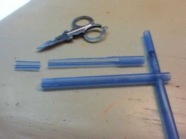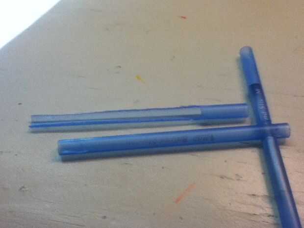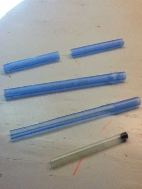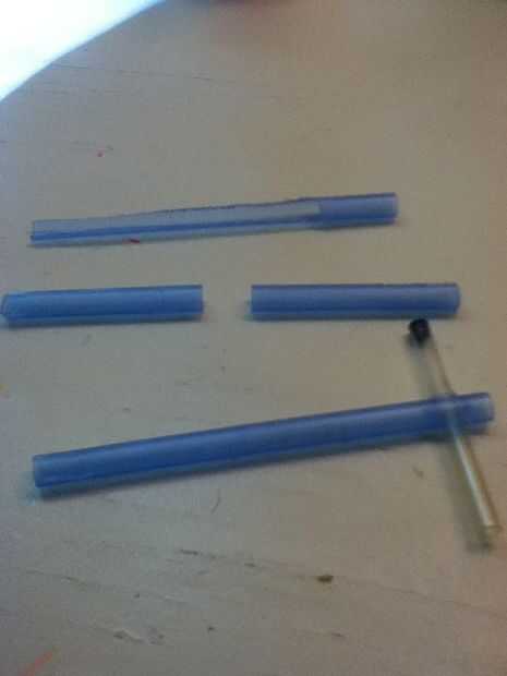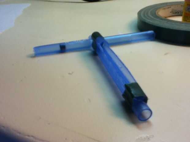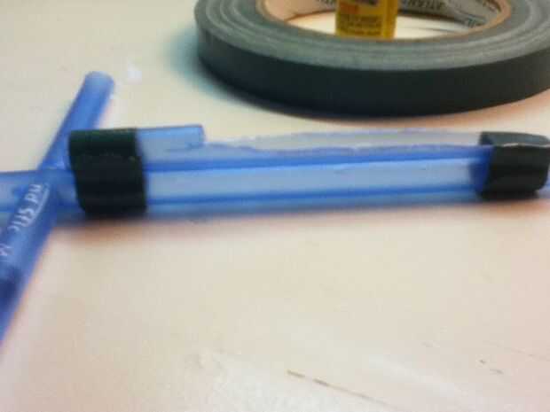 En primer lugar, pegar la pieza cortada de G2 cartucho en el orificio el tubo de base. A continuación, deslice las piezas de tubo de bolígrafo a la mitad en cada lado. Entonces, pegamento caliente la pista de munición hacia abajo en el tubo de la base, sobre un centímetro del extremo con los brazos (cortar los tubos). La pista tiene que ser más corto y el tubo, así que corte lo un poco por lo que tiene la habitación en ambos extremos. También, antes de ir al siguiente paso, te sugiero cortar algunos de los extremos de los brazos para que se vea mejor y para facilitar la "cadena".