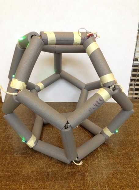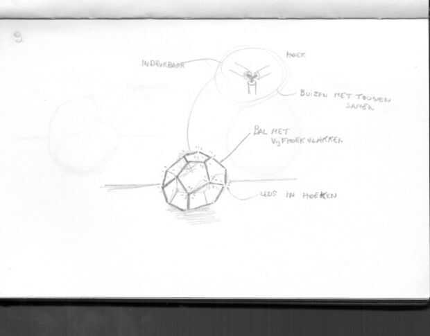 concepto económico tuvimos que improvisar. En vez de una bola nos fuimos para una forma de dodecaedro. Sería capaz de cambiar de color gracias a RGBleds en el marco vinculado a un arduino, cambian de forma al ser compresible y tamaño mediante el uso de modelos más grandes o más pequeño.