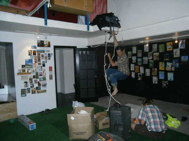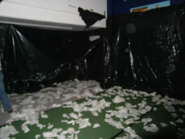 Para evitar el estallido, que nos forramos todas las paredes con láminas de plástico negro. Usted puede encontrar esto en la mayoría de las ferreterías en rollos hasta de 100 pies de largo. Este paso es clave para evitar cualquier imperfección superficial haciendo estallar globos.