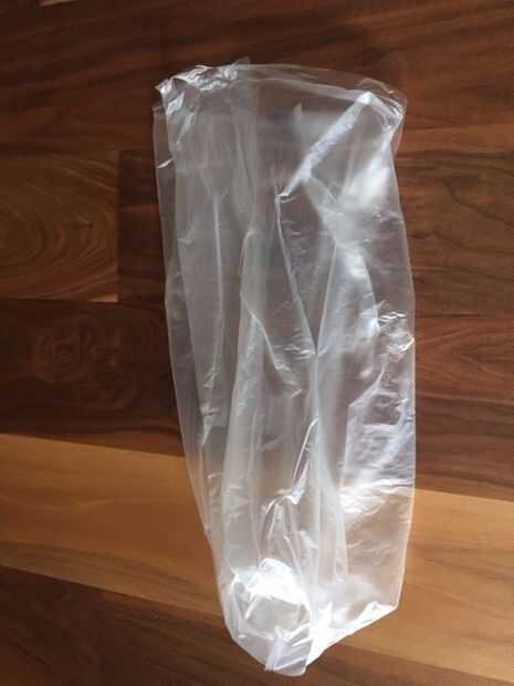 Comenzar con desenrollar una bolsa de plástico y lo despliega. Se despliegan 25 bolsas más. En total tienes 26 bolsas de plástico sin doblar. Uno de los 26 y rellenar las otros 25 bolsas en él como se muestra en la foto de arriba.