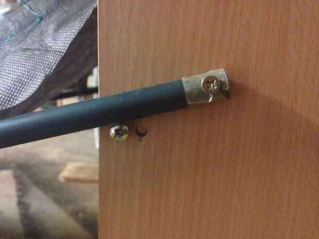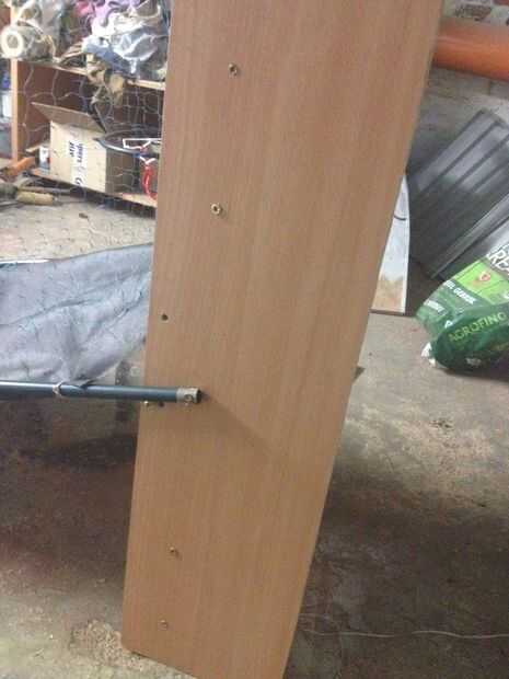 Por lo tanto, he deducido 6 barras de metal de una antigua pérgola y un trozo de tela de raíz. Os adjunto una barra a cada lado de la base. Un poco al lado el accesorio hice otro agujero con un tornillo que sobresale. Esto mantendría la barra en una altura determinada. Las otras barras podrían entonces simplemente deslizarse sobre el primero.