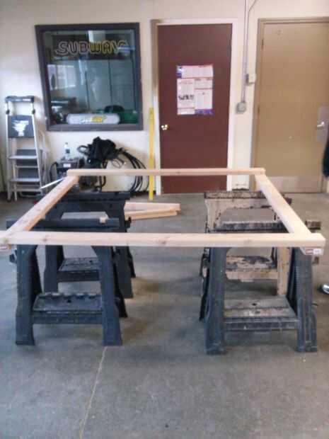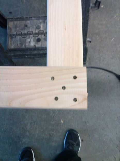 Con dos tableros de 5' y dos tableros de 5'4 ", tornillo juntos por lo que los extremos superponen para crear el 5' 5'4" marco, con las placas de 5'4 "en la parte superior. Asegúrese de que utilice cinco tornillos en cada esquina.
