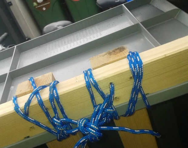 todas las madera superior y aunque una de las capas de fondo. Así puede utilizar 3 clavijas por 4 agujeros de taladro para la estabilidad y utilizan un agujero con la cuerda para ajustar con las cajas.