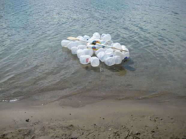 Saltaron sobre él al principio, y para mi sorpresa flotó. No sólo eso, sino apenas se mojó. Mucha gente se preguntó, y dos de los niños fueron capaces de montar en él juntos. Remaron por el lago y me fui a snorkeling en el otro lado. Nunca tuve ningún problema con fugas o roturas, y si habíamos conseguido cualquier viento me imagino que la vela podría haber trabajado. Después de un largo día, fue desmontado y navegó lejos a la planta de reciclaje.