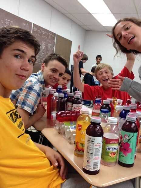 Nuestro primer paso en nuestro proyecto fue recoger botellas usadas de la escuela. Tomamos Arizona iced tea botellas y botellas de té Snapple. Hemos elegido estas porque están hechas de un material más robusto que botellas de gatorade y agua normal. Necesitábamos para asegurarse de que todas las botellas tenían tapas en ellas. Si no fuera así, agua podría y hacer que el fregadero de la balsa.