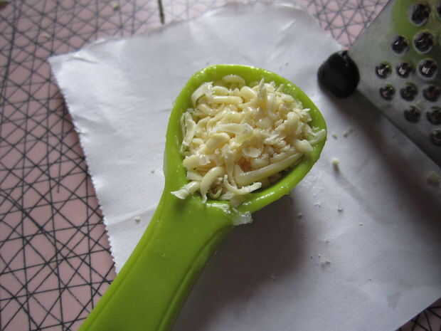Empujar la cera de abejas en la cuchara hasta que quede completo. Asegúrese de que realmente lo embale en allí! Si usted no recibe la cantidad completa, el bálsamo será más suave y más. Que no es necesariamente malo, y es una crema de manos grandes... Aprendí mucho durante mi ensayo con esta. : P