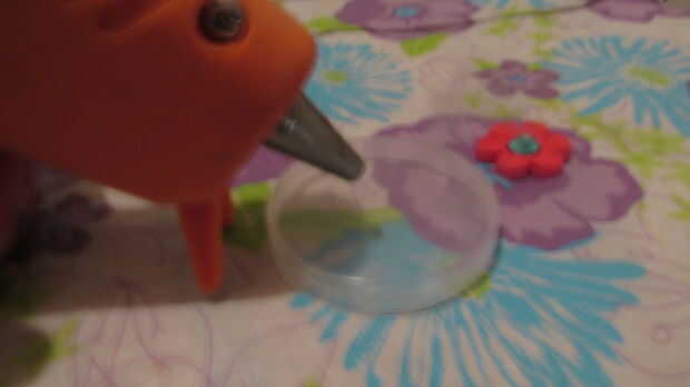 Después de haber vertido el líquido y tu espera a que se enfríe te pueden hacer un paso extra y decorar su contenedor. Esto es cuando pones el knick knacks usar, empezar calentando la pistola encoladora y luego poner un punto cada vez que en la tapa e insertar la destreza de knick, ahora su bálsamo para los labios puede tener un poco bling;)