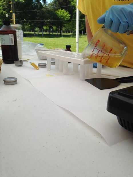 hace: envases de 25 - 5 mlTiempo: 10-15 minutosPaso 1: Ingredientes y fusión Ingredientes:Cera de abejas 1 cucharada4 cucharadas de aceite de coco3 cucharadas de mantequilla de karité3 gotas de aceite de vitamina E10-12 gotas de aceite esencial de va