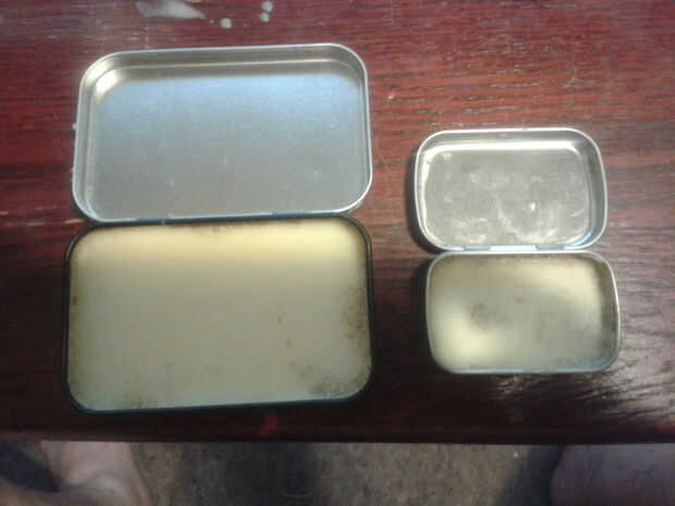 Y aquí es lo que tendrás una vez que se enfría el bálsamo... Se aplica a los labios frotando el dedo ligeramente sobre la superficie para recoger algunos de lo bálsamo y luego use el mismo dedo para frotar a través de tus labios en una fina película.