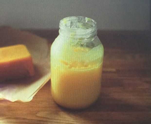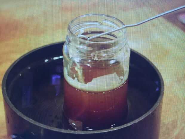 5.) con el tiempo, los ingredientes deben se funden en un líquido agradable como se muestra en la foto de arriba. Al llegar ese momento saque la jarra y apague la estufa. ¡Ten cuidado! Estará caliente!
