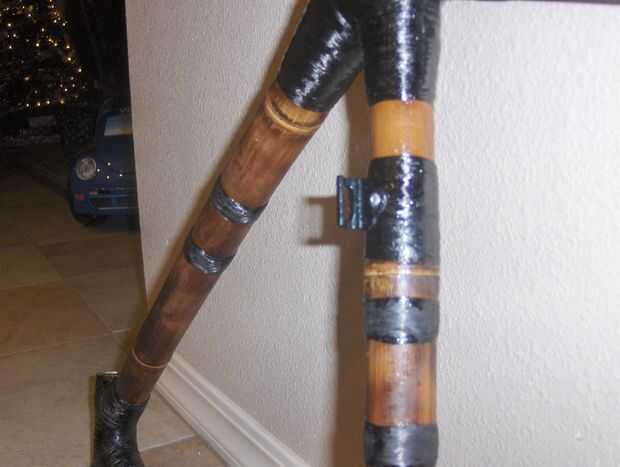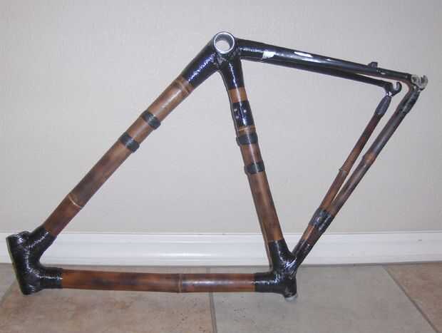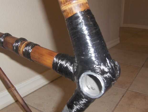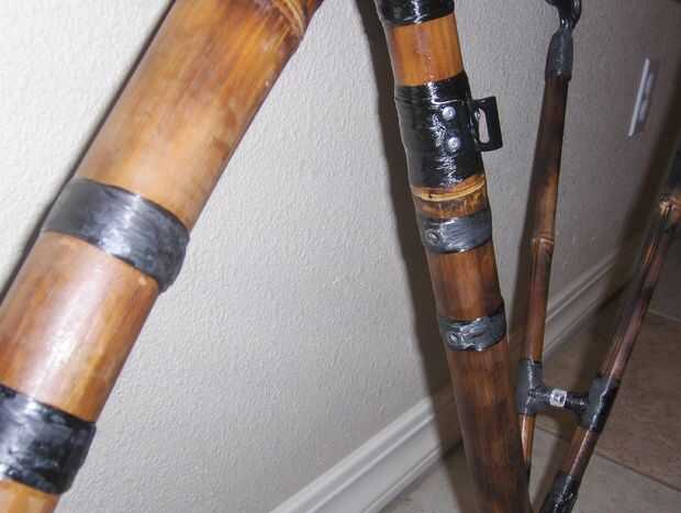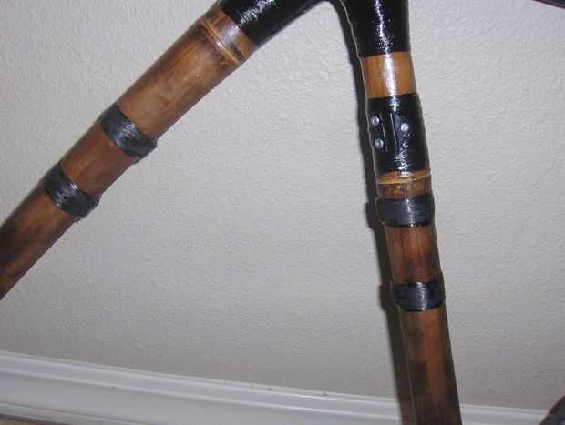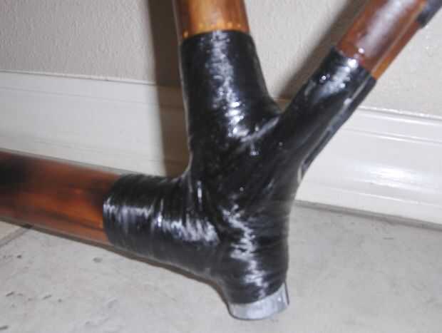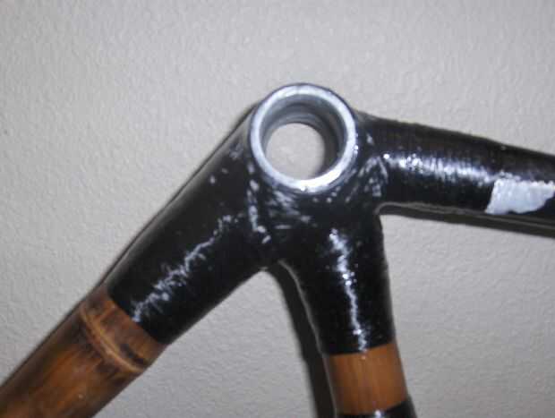 El hangar trasero era un poco más complicado. He medido mi bicicleta actual y subió con una medida de 14.5-15cm del centro del soporte inferior al centro de montaje desviador. Después de esto envuelve carbono alrededor del tubo de bambú para reforzar el bambú en el punto donde sería ser taladrado los agujeros para remaches. Estoy seguro de que podría salir sin este paso, pero tenía sentido para mí hacer esto y no correr el riesgo de partir el bambú con el tiempo de la presión de los ritets y los orificios perforados... No sé, ¡ funciona para mí! Mientras que la resina era todavía pegajosa, coloqué el hangar trasero donde pensé que debería ir. Como curan más tomé el desviador y jugó con el conjunto hasta que pensé que lo tenía derecho, luego a la izquierda él para curar. Una vez curado taladré agujeros y clavó en el lugar. Estoy muy satisfecho con la apariencia final y cómo de fuerte se siente.