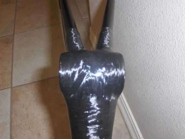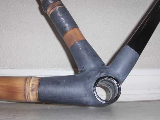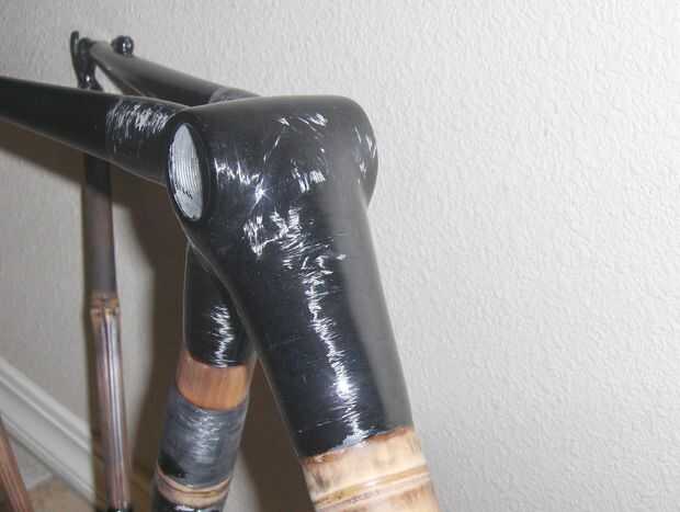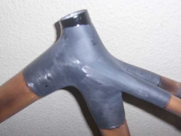 Después de la presentación/raspado que lijar con papel de lija seco 100 grit. Lija con movimientos hacia el bambú y volver hacer su interfaz de thecarbon bambú era suave y limpio. En este punto tuve algunos pequeños hoyos (agujeros de perno) y manchas en el carbono que necesitan para ser rellenado antes de pintura final. Así, mezclados algunos resina y extienda una capa delgada sobre cada estirón con mi dedo enguantado.