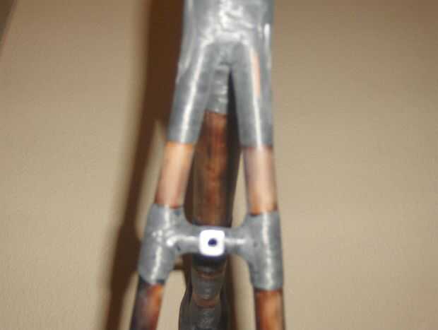Puedes ver más abajo las fotos que pintó el aluminio rieles negro. También toqué algo brillante con un toque de negro. Lugares donde el aluminio se demostró mediante el carbono, como los jefes de la botella de agua, y cable de freno y cambio se detiene, se tocan con el negro. Va todo a cubrirse por rojo translúcido, por lo que no quieren el aluminio plateado que brilla a través.