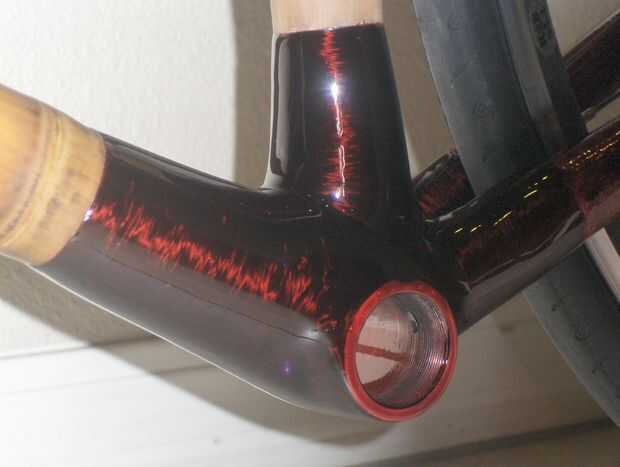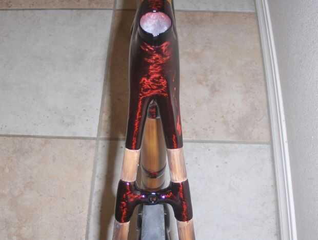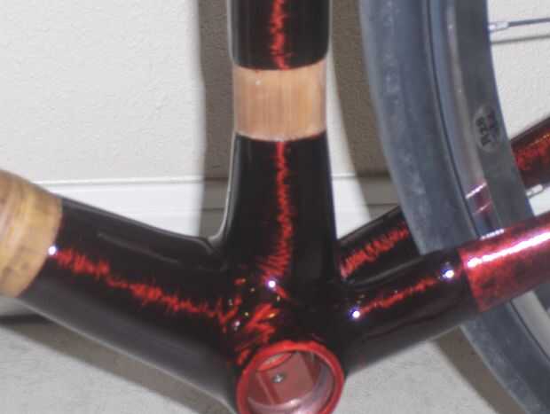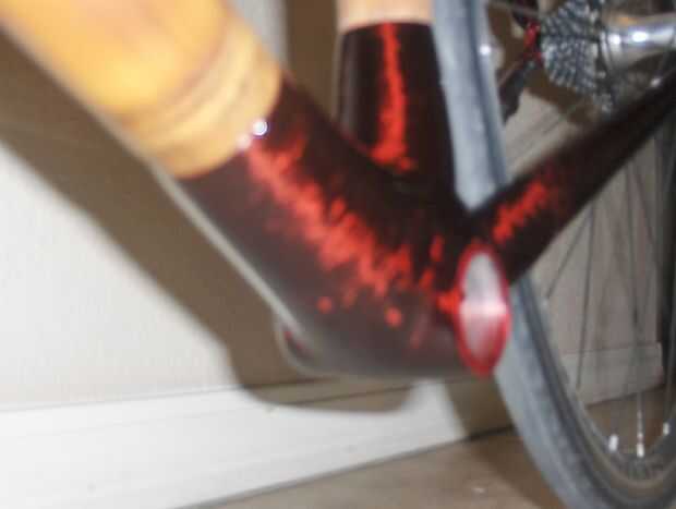 Pelan la cinta de riel trasero después de algún tiempo para esta capa se seque. Mezclé el caramelo rojo de Apple con algunos cósmica claro a un rojo más translúcido (para asegurarse de que se podía ver a través de al carbono) y añadido el reductor y hardner según las instrucciones y enchufado mi compresor de aire. Este es el momento que he esperado tantas semanas!