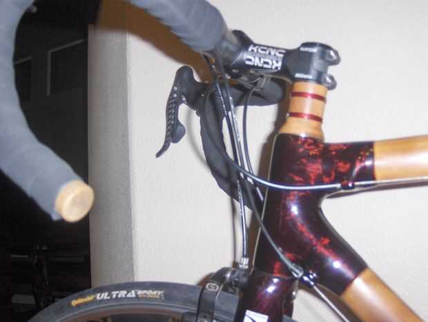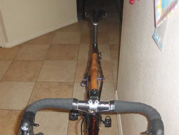 Encadenan los frenos y desviadores (este es un proceso, sin duda mejor dejarlo hasta la tienda de la bicicleta, si tiene alguna pregunta o alguna!). Esto me tomó bastante tiempo ya que es la primera vez que lo he hecho, pero pensé que construí un marco de bambú! ¿Debo ser capaz de cadena demasiado la cosa, derecho? Después de un viaje rápido por el salón para asegurarse de que la barra de asiento y asa fueron instalados correctamente y para ver si había cualquier extraños arroyos o grietas, grabó las barras!
