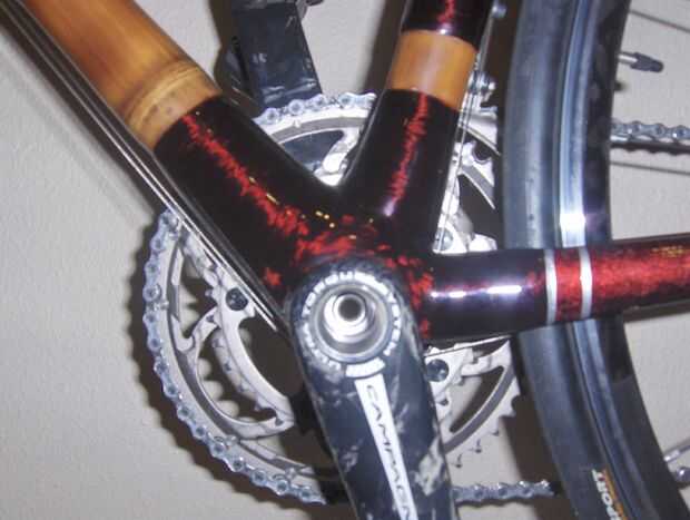 Bueno, por fin ha llegado el momento! El marco está acabado, la pintura y el poli son secos, pulido y encerado. Por lo tanto, comencé desnudándose la primera moto de bambú con sus componentes para la bicicleta de nuevo. Voy a hacer algunas mejoras a la moto vieja (volver a hacer los empalmes, por lo que la forma cónica en el bambú, como éste y las zapatas, otra vez como esta la pintura).