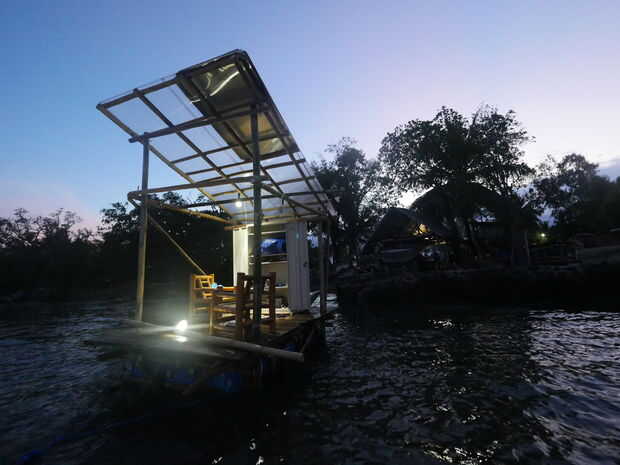 El efecto de esto es que trabajo cerca (como soldadura) en un único módulo flotando en las olas puede hacer bastante mareado, bastante rápido! Un solo módulo funcionaría perfectamente en un lago, o en otro cuerpo de agua sin olas.