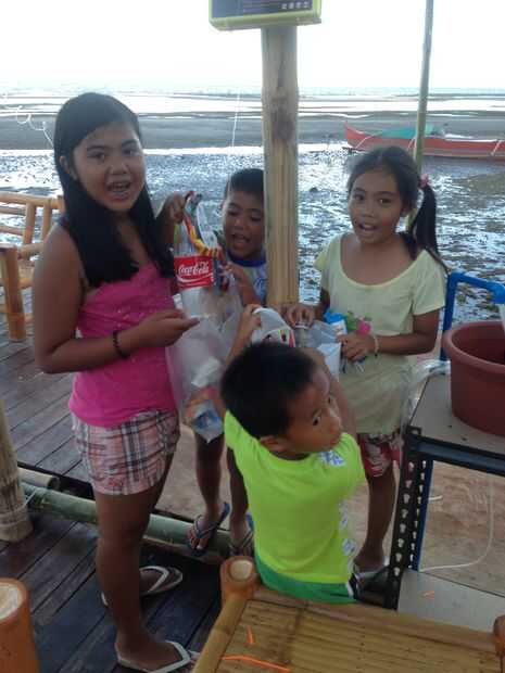 Mantener el arrecife saludable comienza con detener la basura entre en él. Contraté a un grupo de niños de barrio poco impresionante para convertirse en el oficial "Bantay Basura" o "Protector de la basura."