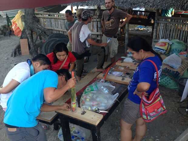 Por ejemplo que ya han hecho un montón de dispositivos sencillos para la trituración de botellas de plástico en cadena que podemos atar juntos de bambú.