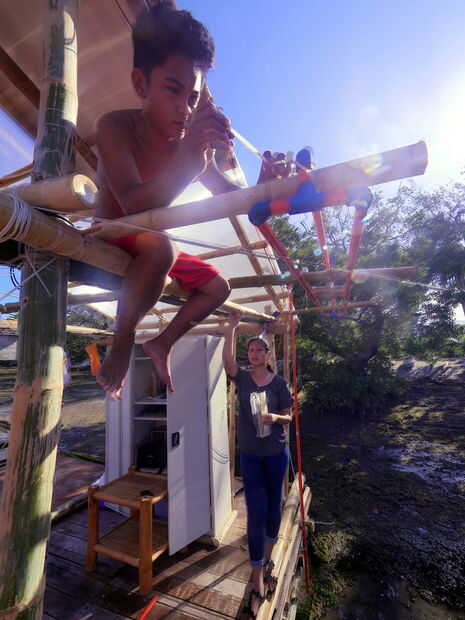 El equipo hizo una increíble vídeo-pantalla donde puede visualizarse desde el submarino o videos directamente en una lámina de agua caída. Es tan genial! Incluso construyeron su propio sistema de homebrew