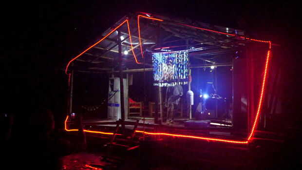 Tenían dos sistemas de visualización primario implementaron: proyección de la cascada + tiras de LED
