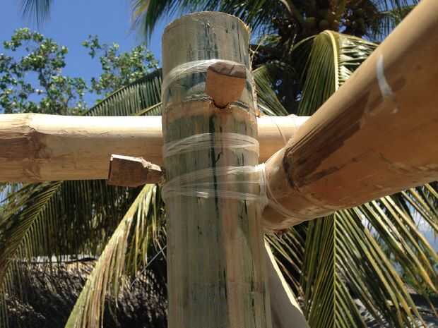 Luego llevaban agujeros perpendicular a través de las piezas de bambú que son un poco demasiado pequeños para las uñas. Finalmente usted martilla este clavo a través del orificio hasta que tenga un buen ajuste.