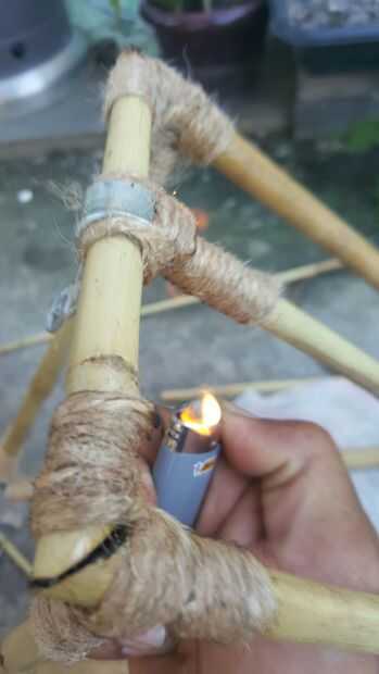 selección de bambú era simple cualquier ferretería tenerlos. Uso bambú a1/2 pulgada para jardinería y corte a medida. herramientas de corte de hilo adhesivo instantáneo fuego y voy a explicar más adelante