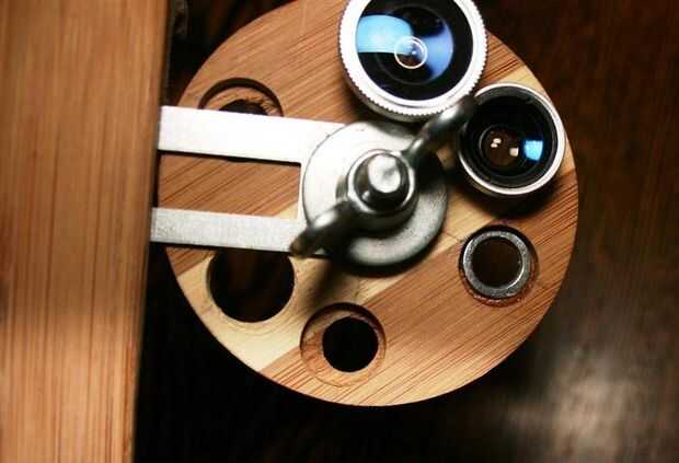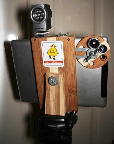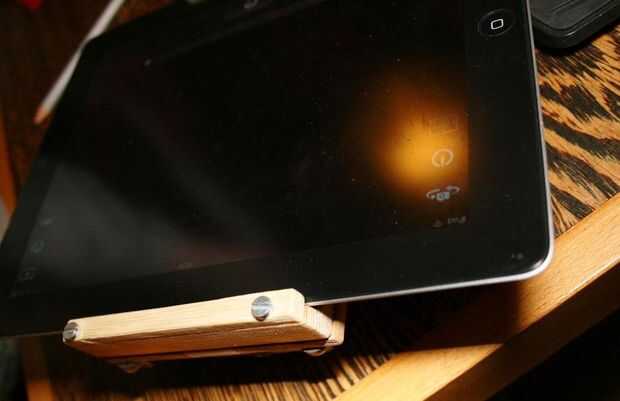 Paso 1: Crear cuñas de madera dura para iPad esquinaEl caso del iPad es redondeado donde se encuentra la cámara, y los accesorios de lentes de Photojojo (angular, teleobjetivo, etc.) requieren una superficie plana para colocar el anillo de la lente s