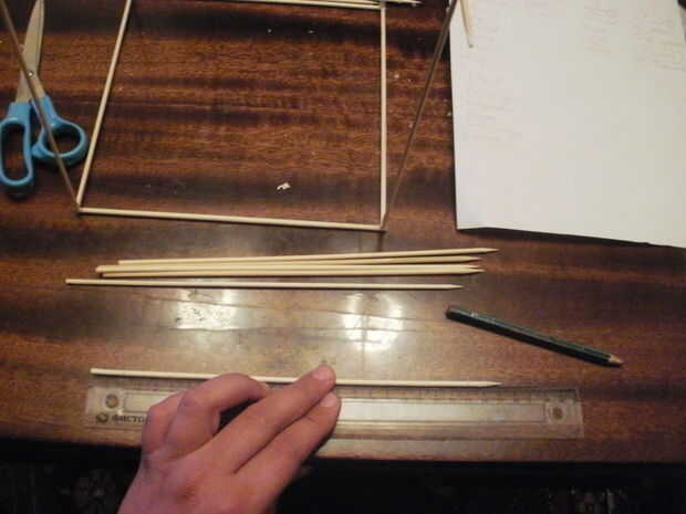 necesitaba hacer algunos mesurig que hacer antes de comenzar. Los dos extremos de los pinchos me he medido 2cm y poner una marca con el pensil para esta 2 cm iban a palillo de la base de la lámpara efecto ornamental.