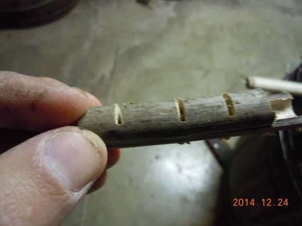 Bambú, playa cristal y lámpara de piedra (1 / 16 paso)