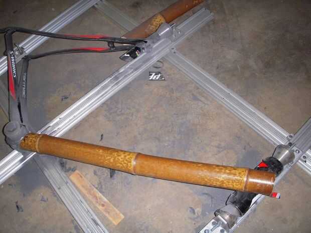 Con el vicio, la herramienta de corte de madera dremel y lija poco eran una buena combinación. En comparación con un archivo, esto es construcción de la velocidad de la luz. No empuje demasiado fuerte en los extremos del bambú, como no quieren romper el bambú. Esto es más probable con un archivo y vi que una dremel. Los ingletes eran bastante descuidados y terminó por aceptar. Menos descuidado es mejor, pero no arruinar su día sobre él. Sólo tiene que encajar bien.