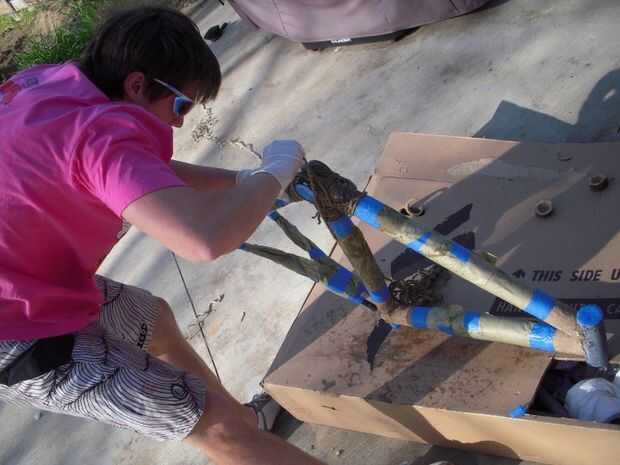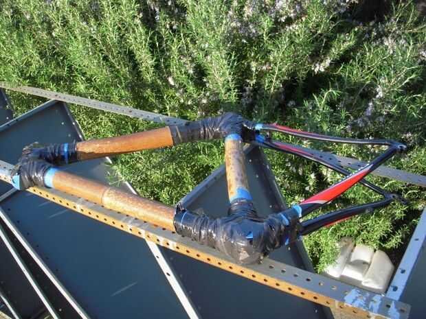 pero era mucho más fácil que las fibras crudas no vale la pena. Luego envolvemos las articulaciones con el lado adhesivo de la cinta aislante exprimir el extra de epoxy de la bandeja