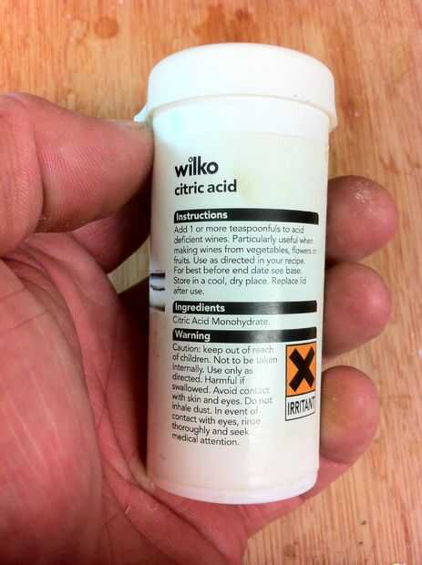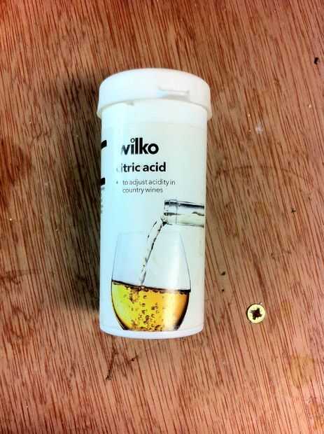 También me han dicho que coladas de plátano deben tener ácido cítrico agregar para equilibrarlos en la escala de PH, luché conseguir papel de tornasol para saber lo que era el PH del vino, así que añadido a cualquier caso. Recuerde leer las instrucciones, usted podría incluso utilizar jugo de limón en su lugar.
