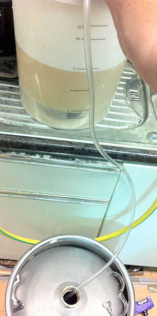 Usando un movimiento de sifón de cerveza/vino el líquido en la caldera de su inmóvil, que seguro no a recoger la levadura y sólidos a la izquierda en la parte inferior.