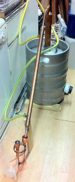 Tomó mucho tiempo para calentar el alambique hasta que empezó a producir alcohol, pero cuando lo hizo salió en poco menos de 80%. Esto es demasiado alto para beber, pero como cae el porcentaje el % global de toda la masa se convierte en menos, que terminó con cerca de 1 galón imperial (4.5 L) del espíritu.