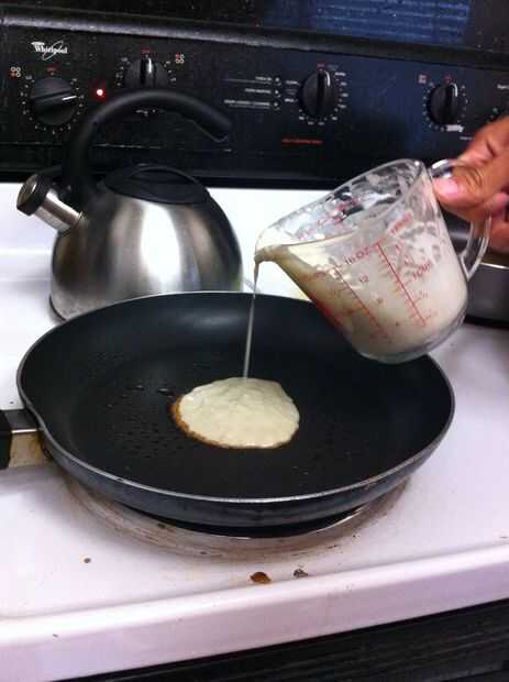 Paso 8: Voltear panqueques cuando burbujea y cocinar hasta que se doren.