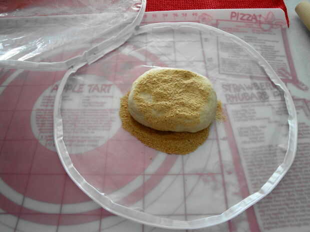 Estirar la corteza en un círculo de 12 pulgadas con las migas de galleta en vez de harina. En una tartera de 9 pulgadas, cortar la masa según sea necesario, dejando un voladizo de 1 pulgada de masa alrededor de los lados de la cacerola. Doble la masa debajo de sí mismo para crear un borde robusto y los bordes de la flauta. Refrigere la masa de la empanada hasta que esté frío, por lo menos 30 minutos.