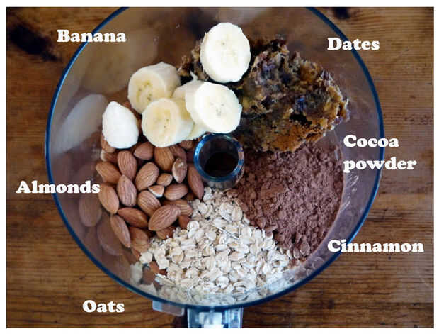 Coloque todos los ingredientes en un procesador de alimentos y pulse hasta que una masa comienza a grupo y formar una bola