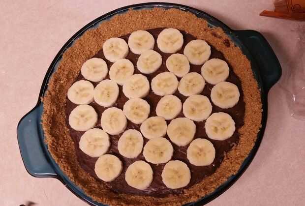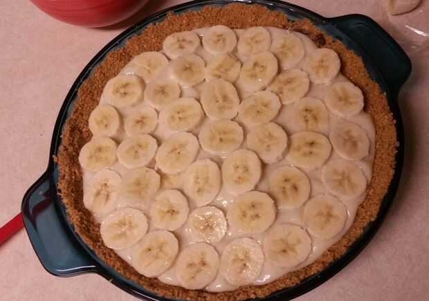 Capas alternas de plátanos y con leche hasta que tu pie esté llena.